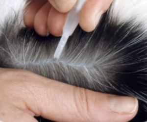 • Druppel het preparaat op de huid; probeer het product zo veel mogelijk op de huid aan te brengen en zo weinig mogelijk op de vacht/haren.